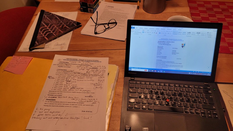 Lach, mein Schreib:Zeit-Protokoll ist in meinen laufenden Schreibkursen stets die Reflektion des Abends. Damit sich meine Schreibenden ganz dem Flow hingeben können, den ich durch meine Impulse erzeuge, übernehme ich hinterher die Zusammenfassung aller theoretischen und praktischen Anleitungen.