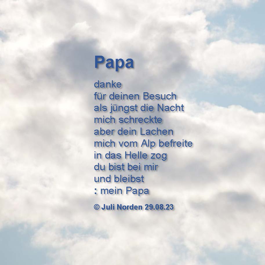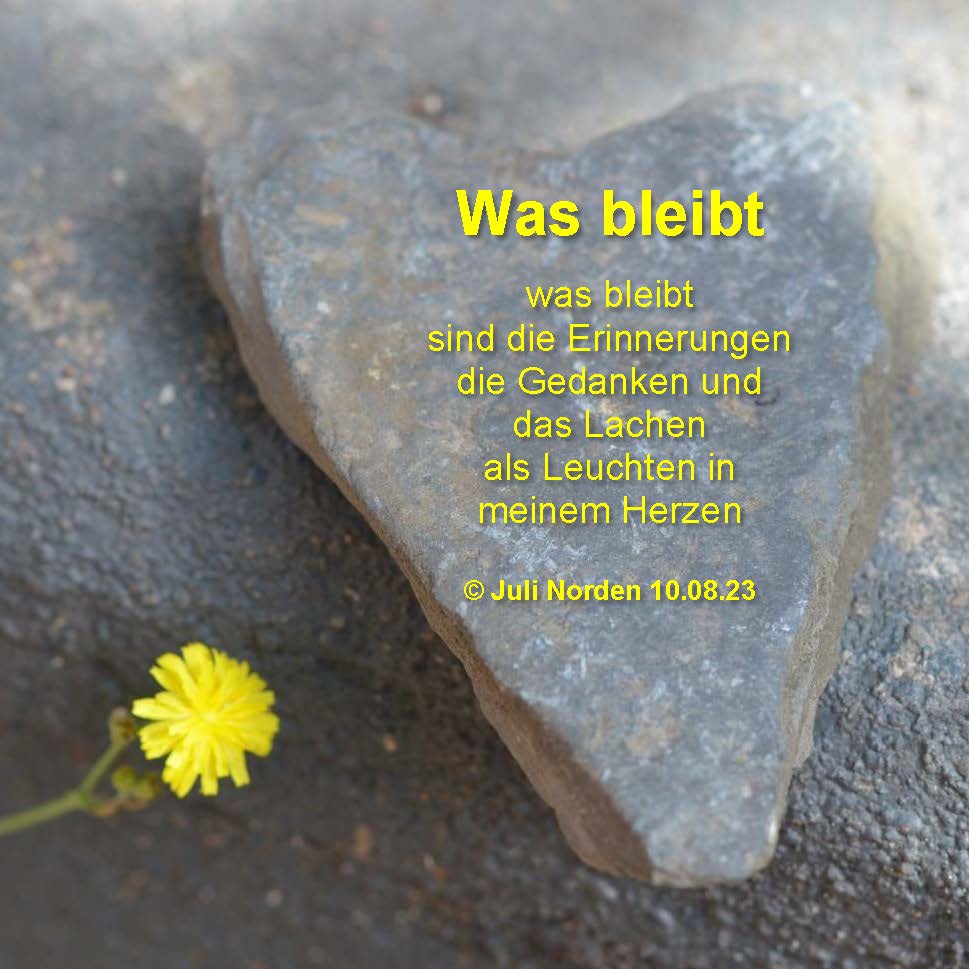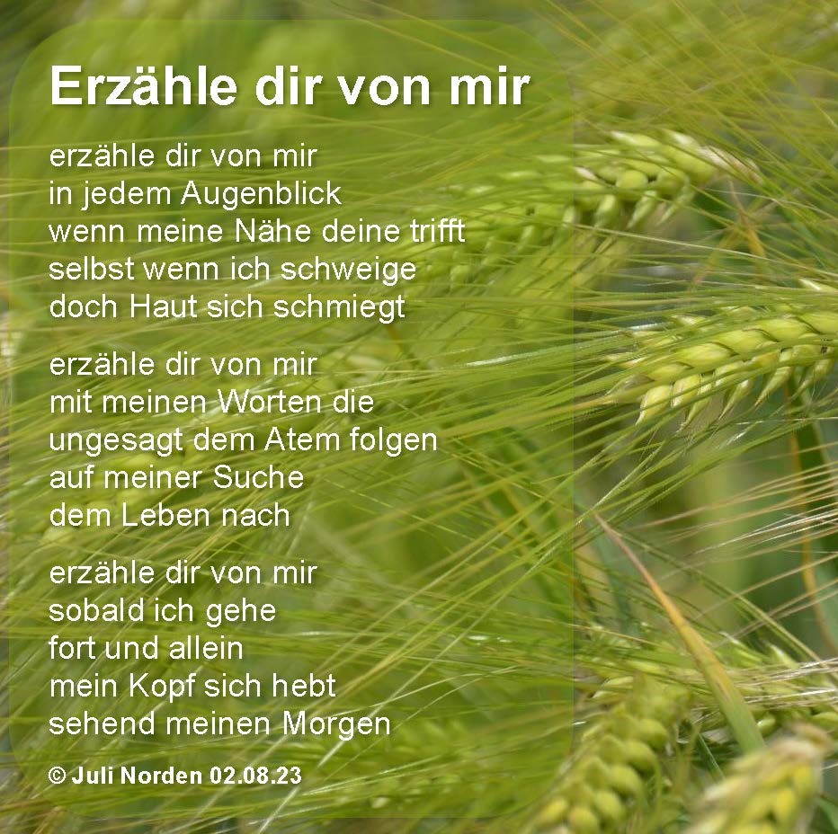 Daher hier meine zehn meist gelikten Gedichte als Top10-Sammlung für August 2023 wieder in chronologischer Reihenfolge 🙂 Wer mich kennt, weiß Juli Norden ist mein offenes Autorinnen-Pseudonym, unter dem ich selbst Texte veröffentliche und ich gebe zu, bei der Einarbeitung der Gedichte hier ist mir eine gewisse Schwere der Inhalte durchaus bewußt. War unterschwellig ein Monat mit vielen, tiefen und nicht wirklich leichten Themen und Gedanken, durchdrungen von Abschied, Erinnerungen und mancher damit verbundenen Traurigkeit …