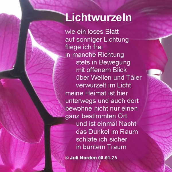 Hier zeige ich meine meistgelikten Gedichte als Top10-Sammlung für Januar 2025 in chronologischer Reihenfolge 🙂 Wer mich kennt, weiß, Juli Norden ist mein offenes Autorinnen-Pseudonym, unter dem ich selbst künstlerische Texte veröffentliche – meine Gedichte übrigens ausnahmslos mit selbst gemachten Fotos 🙂