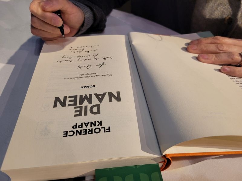 Was für eine sympatische Autorin! Zierlich, erzählfreudig, nur habe ich nicht wirklich viel verstanden, lach, denn in der Kürze der Zeit war ihr Londoner Akzent dann doch zu ungewohnt für mein Schulenglisch. Florence Knapp hat ein hochinteressantes Buch geschrieben. Ihr Roman Die Namen wirft sein Augenmerk auf Identitäten. Wo kommen sie her und vor allem: Was haben sie mit dem Vornamen zu tun? Auf den niemand von uns einen Einfluss hatte, denn als unsere Eltern ihn uns gaben, fehlte uns als Neugeborene dafür jegliches Bewußtsein.