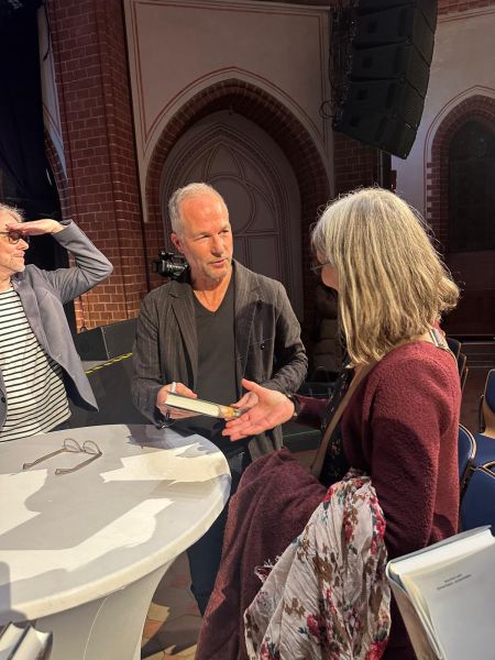 Ich bin gespannt auf die Lektüre und mich selbst dabei zu hinterfragen. Ganz sicher werden meine Gedanken in einem der nächsten Monatsrückblicke von mir in Worte gefasst werden, ist doch klar! Übrigens haben der Moderator Thomas Laue, künsterlischer Leiter der Nibelungenfestspiele Worms, und der Autor ein wirklich unterhaltsames Gespräch geführt. Ich hatte den Eindruck, sie würden sich schon länger kennen. Kleine, charmante Frotzeleien ließen ihre grundsätzliche Übereinstimmung in vielen Lebensthemen erahnen. So mag ich Lesung sehr!