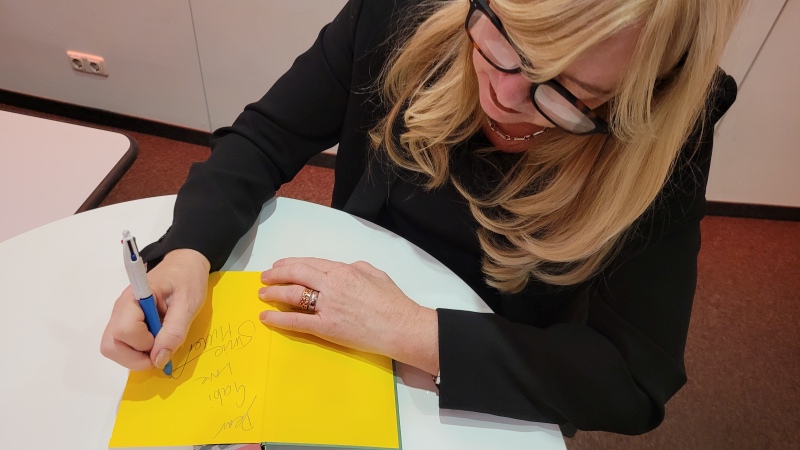 Wobei am Ende für mich der Star des Abends weder Suzie noch Anke waren sondern die Moderatorin Marie Christine Knob. Wie sie mit der übersprudelnden Autorin ihr deutsch-englisches Interview führte, das war wahrlich meisterhaft. Routiniert und mit Witz konnten so alle Anwesenden im ausverkauften Tanzbrunnen am Kölner Kennedyufer das fundierte juristische Wissen der Autorin kennenlernen.