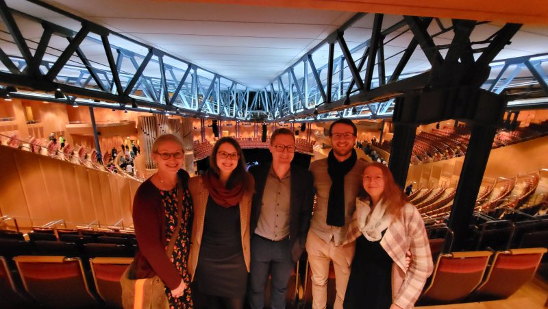 Und so saß ich für den zweiten Teil wieder auf meinem Platz im Hochparkett (immerhin keine teure Karte, darüber hätte ich mich dann doch geärgert). Und siehe da: nach der Pause nahm mich das Stück mit. Ich feierte das Bühnenbild und seine stetige Veränderung, wenn die kurzen Szenen wechselten; bewunderte die Kunst der Musiker, die schrägen, schrillen Töne zu spielen; erlebte die Darbietungsfreude der Akteure auf der Bühne. Sie alle bekamen am Ende (einer stirbt natürlich!) ihren verdienten Applaus.